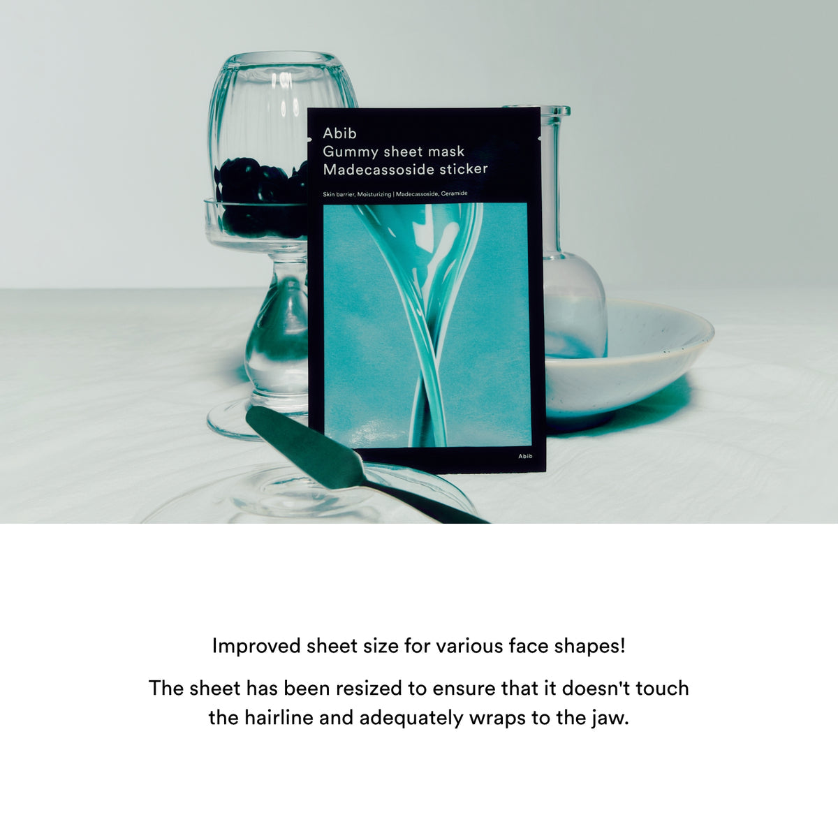 Gummy-fit sheet technology: The unique “gummy” adhesive sheet hugs the contours of the face to improve ingredient absorption and prevent slipping during use.