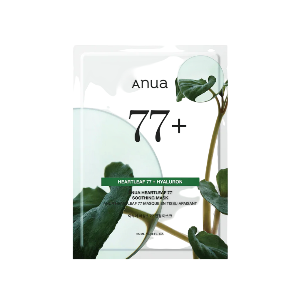 - A soothing sheet mask with 77% Korean Heartleaf extract that instantly soothes and moisturises red, irritated skin with mild ingredients
