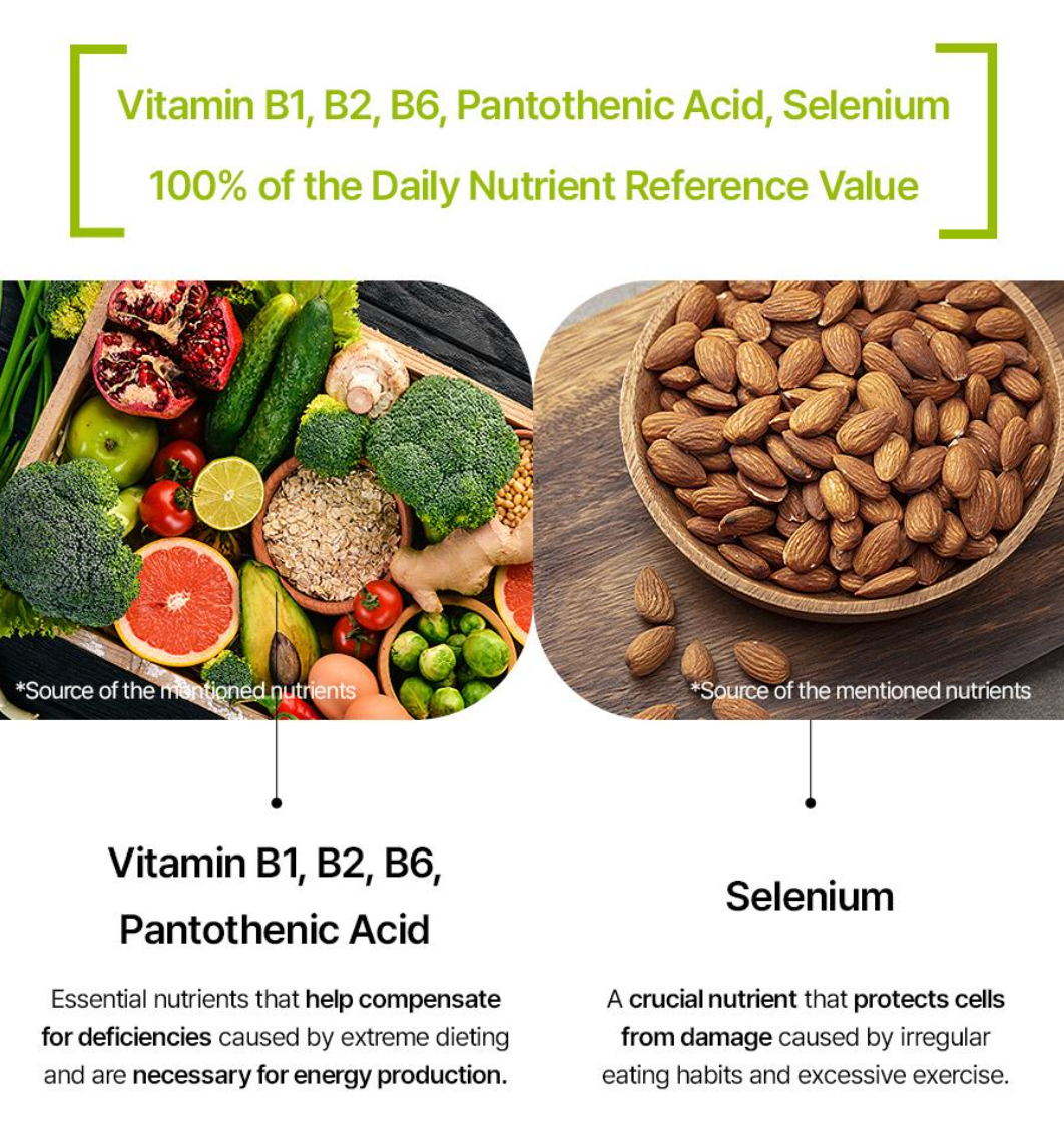 Adaptogens & nutrients: Features Rhodiola rosea extract, which some use to help reduce fatigue, plus B-complex vitamins (B1, B2, B6), zinc and selenium to support normal energy-yielding metabolism and immunity.