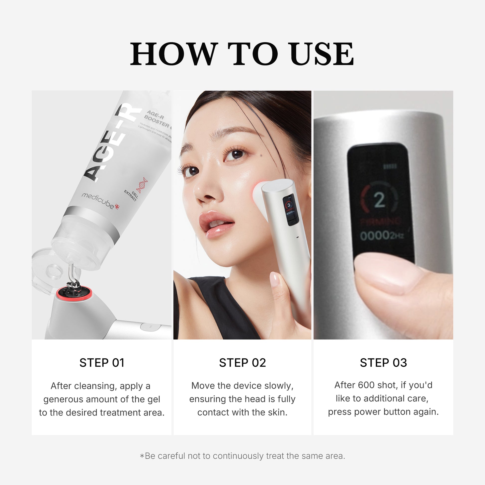 - Bluetooth app control: Connects via bluetooth to the AGE-R mobile app to track usage, adjust intensity and provide guided treatments