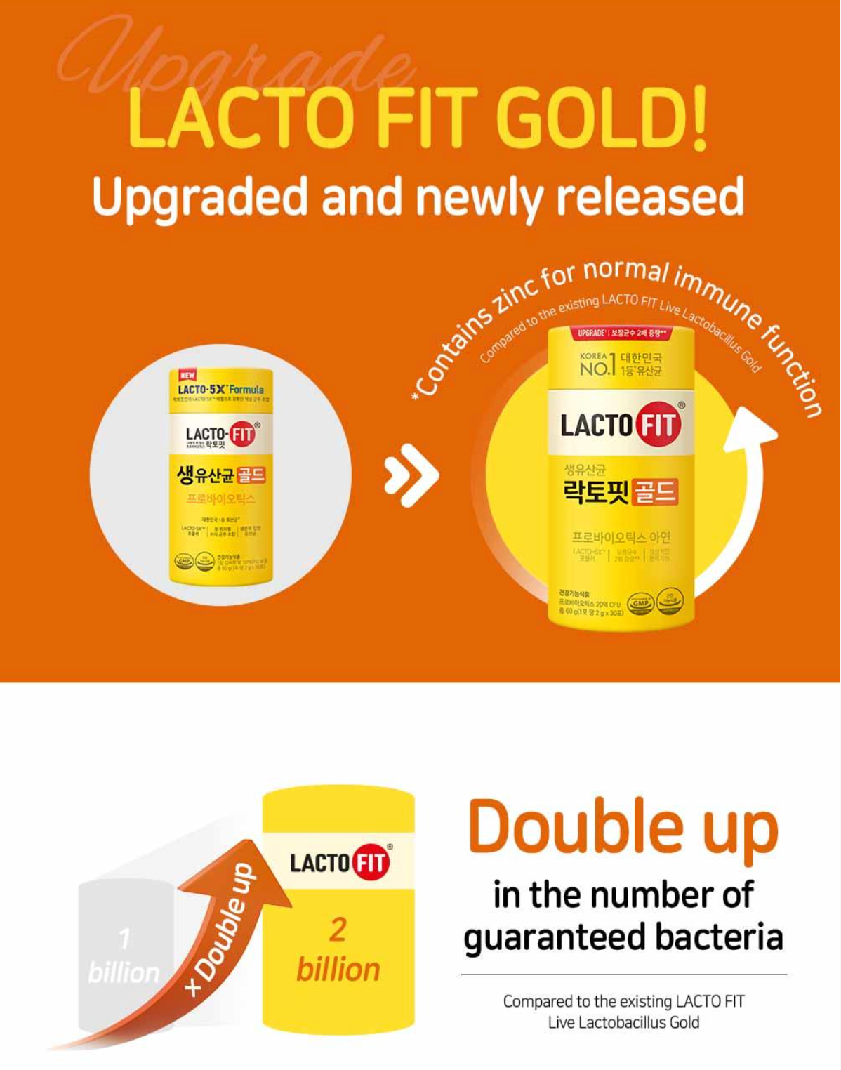 • Renewal: The upgraded version of Korea’s No.1 probiotic, now enhanced with zinc for added immune support. Each stick contains double the number of guaranteed bacteria!
