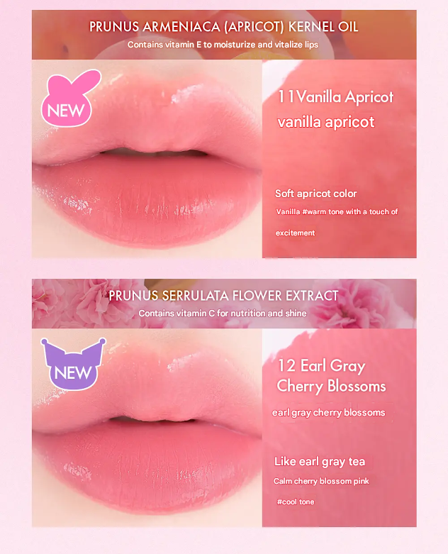Comes in two charming versions—Vanilla Apricot featuring My Melody or Earl Grey Cherry Blossom in a Kuromi design—each infused with whimsical Sanrio flair.