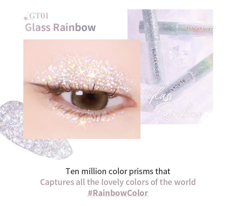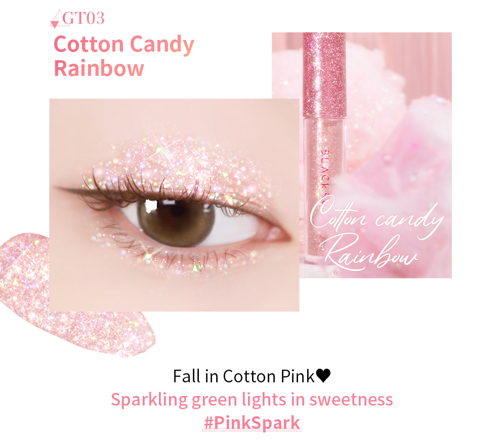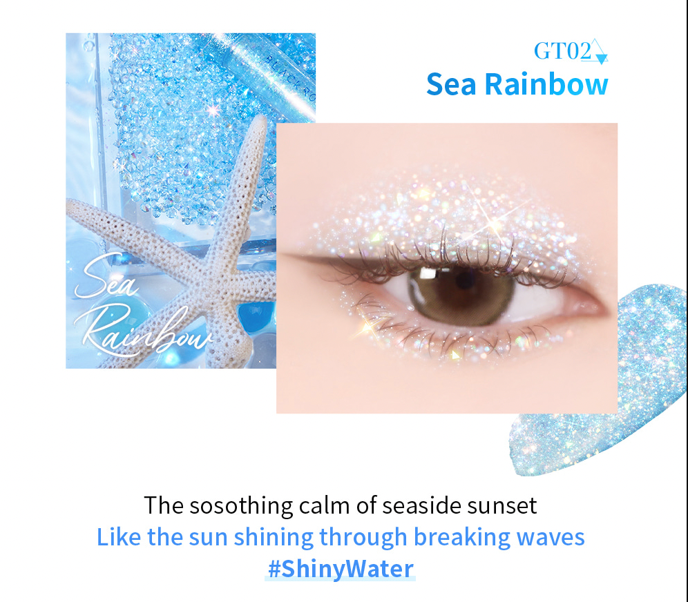 - A liquid glitter eyeshadow packed with triangle-shaped pearlescent holographic sparkles