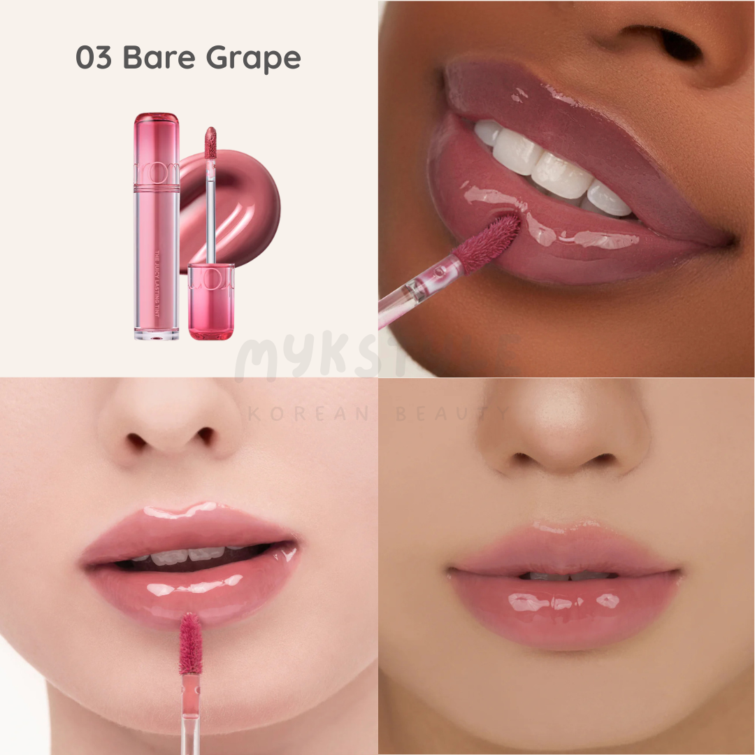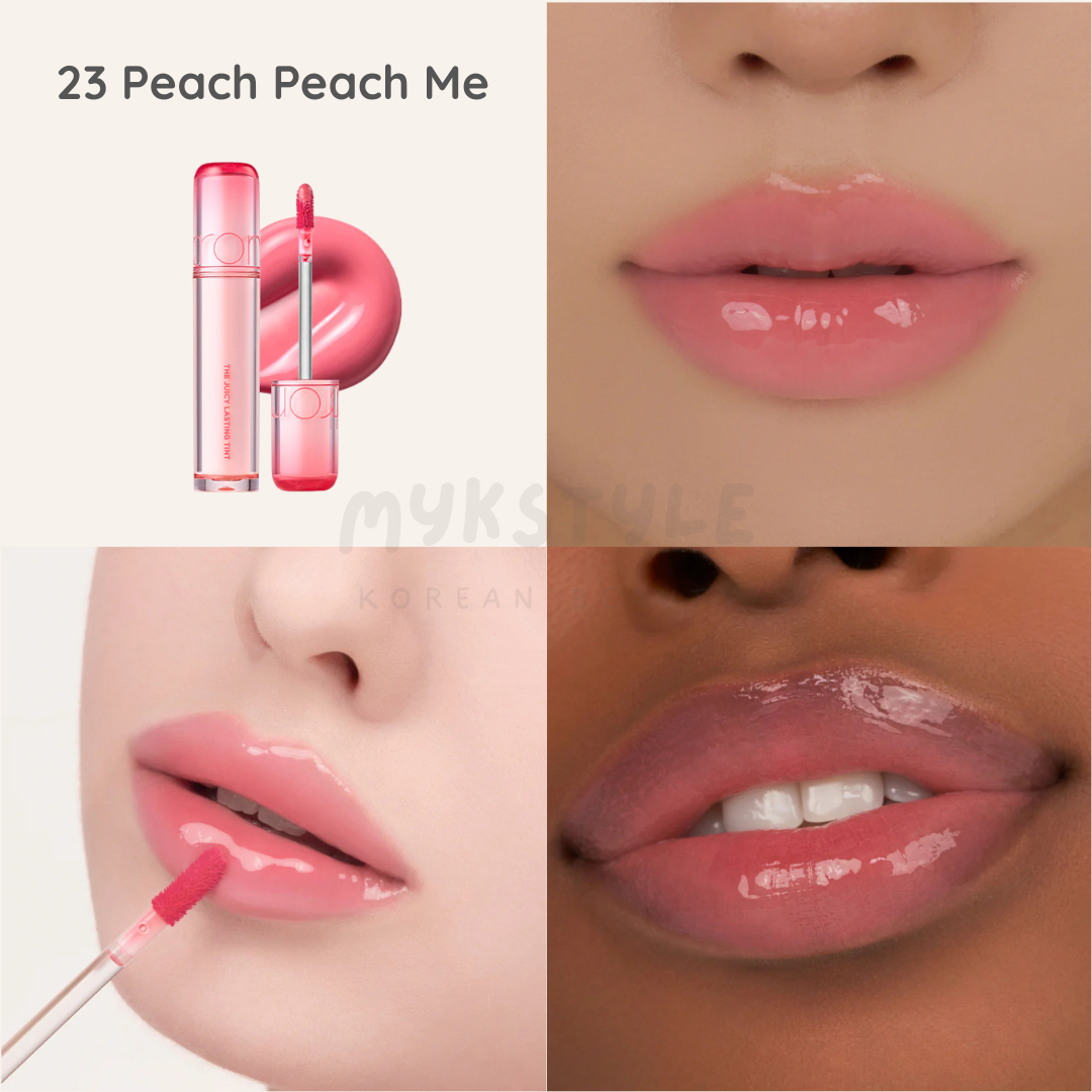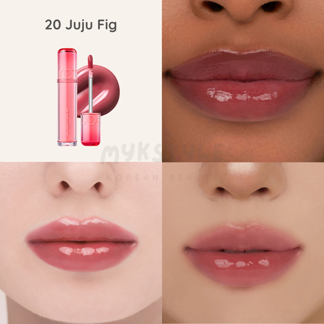 The Juicy Lasting Tint — ROM&ND’s bestselling, fruit‑inspired lip tint celebrated for its vivid, glossy finish and hydrating comfort. Offers buildable, candy‑coated shine with long-lasting color.